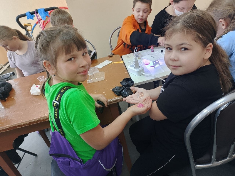 Дети с большим интересом учились аккуратно смешивать компоненты, добавлять красители и маленькие украшения – блёстки, сухоцветы, бусинки. Фантазия юных мастеров не знала границ!