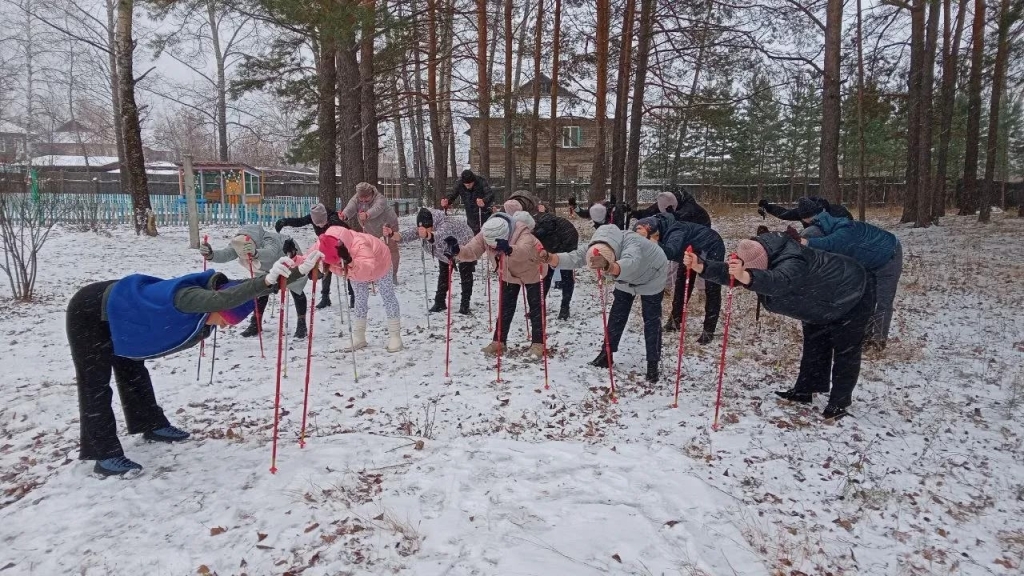 В рамках масштабного Всероссийского проекта «Северная ходьба объединяет» коллектив педагогов и работников детского сада №4 р.п. Чунский принял участие в увлекательном мастер-классе по северной ходьбе, который провела Ирина Анисимова, инструктор по спорту МБУ «Спортивный комплекс».