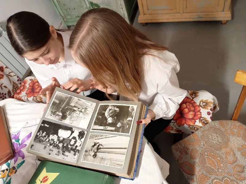 Ребята не просто рассматривали пожелтевшие снимки разных десятилетий, а учились «читать» их, как исторические документы. Они пытались по деталям — одежде, причёскам, символам на школьной форме и пионерских галстуках — определить эпоху, угадать, как менялись традиции и настроения школьной жизни.