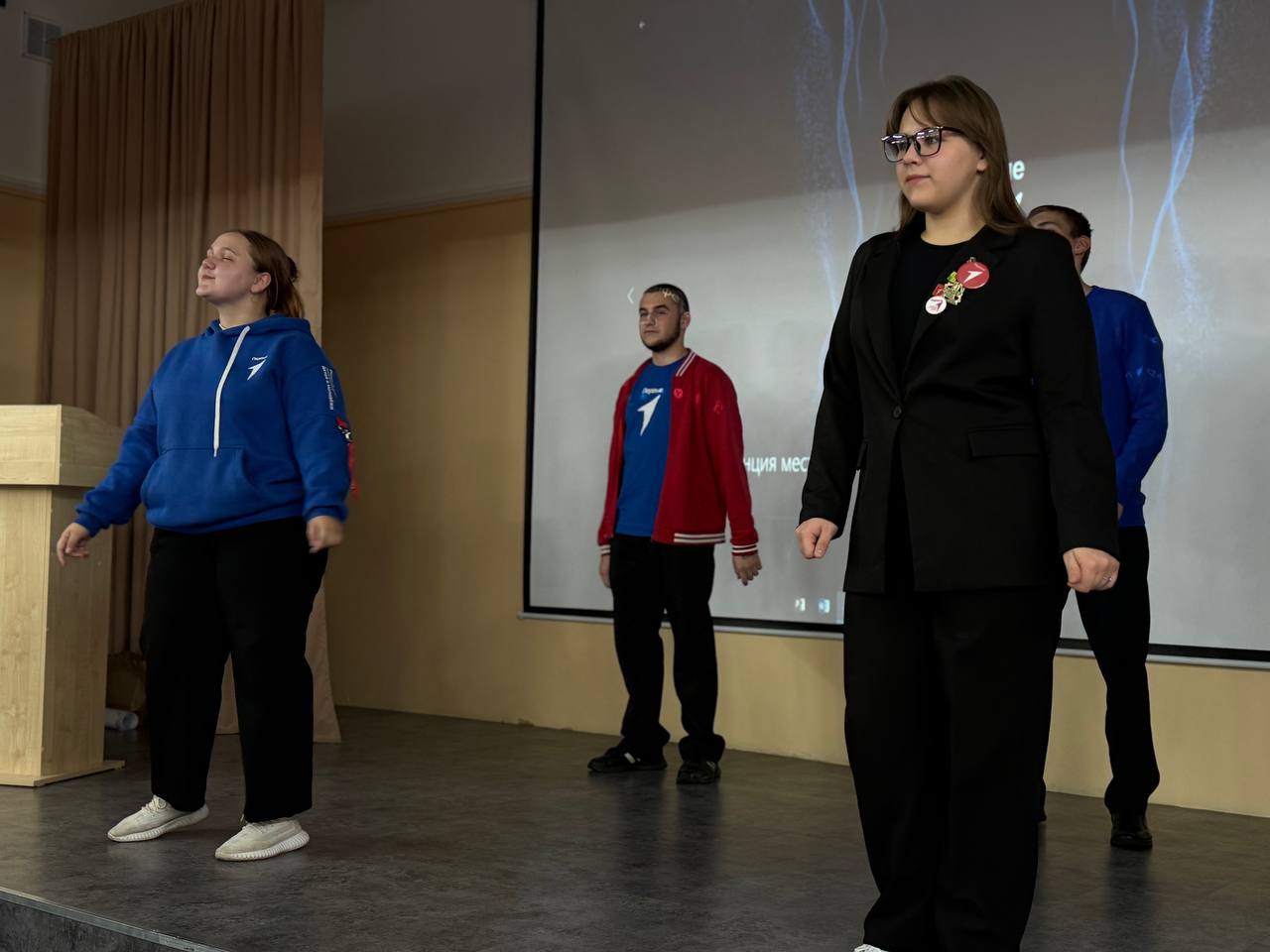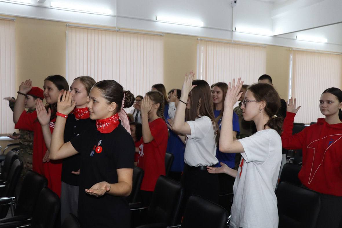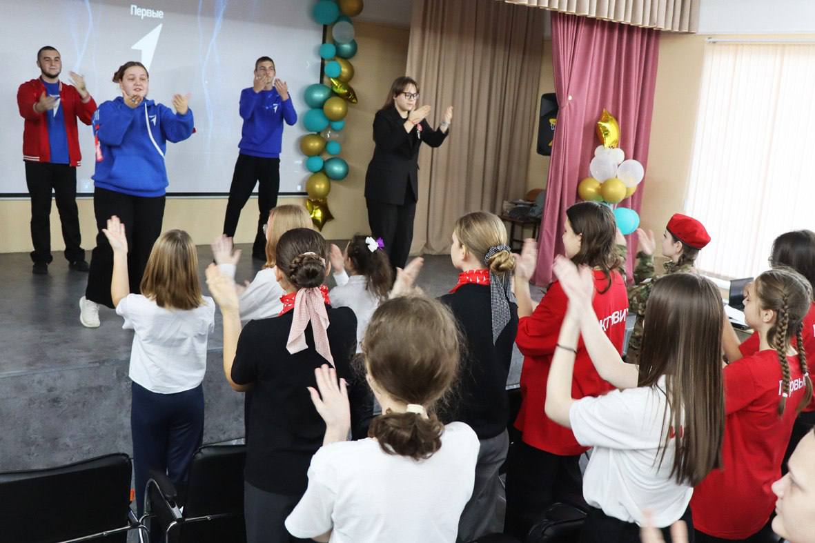 Вместе с руководителем Местного отделения Татьяной Суворовой Первых приветствовали заместитель начальника управления образования и молодежной политики Анастасия Кравченко и муниципальный координатор советников по воспитательной работе Елена Брюханова.