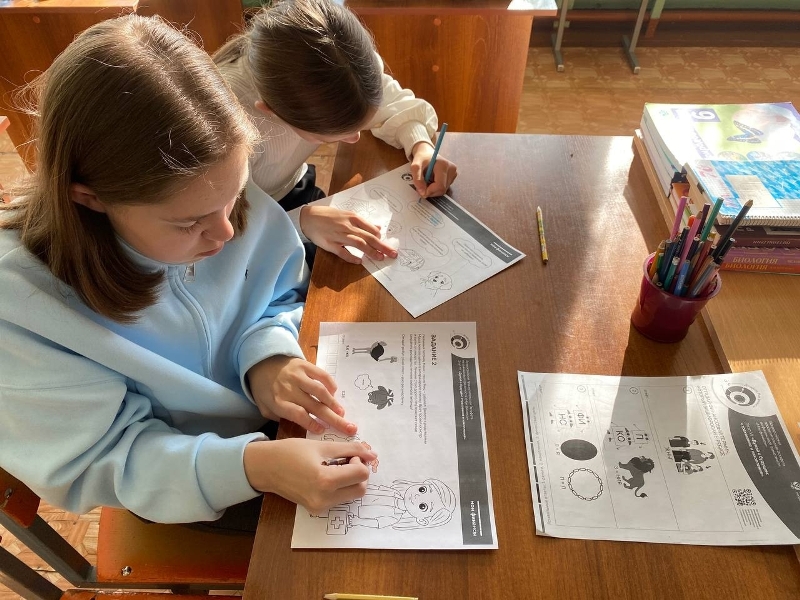 Учащимся младших классов раскрашивали сюжетные картинки и разгадывали ребусы по финансово-цифровой безопасности семьи.