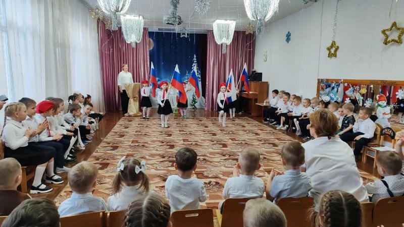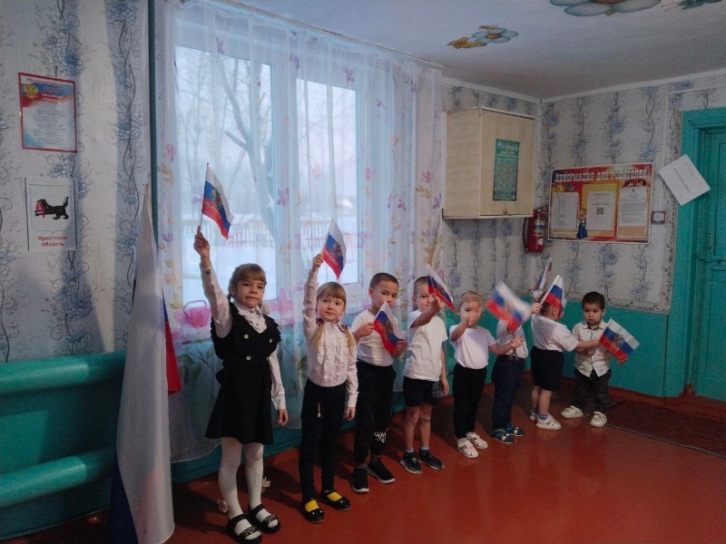В дошкольных учреждениях Чунского округа утро воспитанников на этой неделе, как и в школах, началось со знакомых звуков гимна, торжественного выноса российского флага, чтения патриотических стихов, исполнения военных песен и флешмобов.