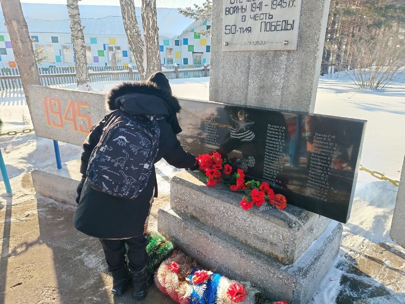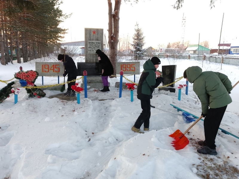 А за день до этого участники юнармейского отряда «Сокол» провели трудовую и памятную акцию по благоустройству территории у обелиска: очистили территорию, убрали снег, аккуратно привели в порядок подходы.
