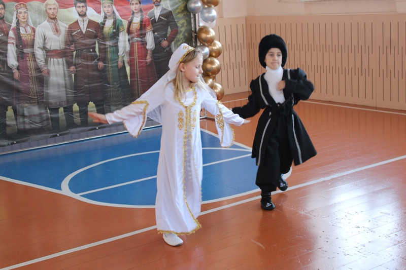 Атмосфера школьного праздника также была пронизана духом нашей многонациональной страны. Звучали зажигательные мелодии, ученики исполнили попурри народных танцев, демонстрируя красоту и разнообразие культур народов России.