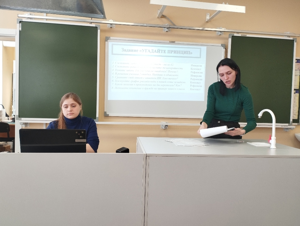 Учитель математики Алена Юрьевна Виноградова в теоретической части мероприятия познакомила коллег с принципами трансформации учебного задания.