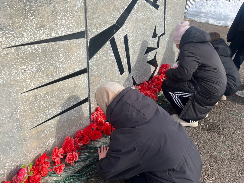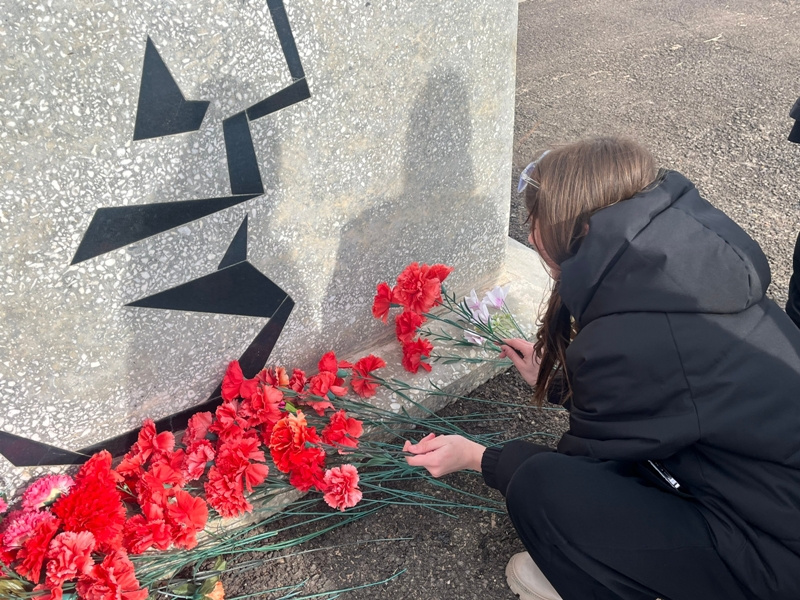 Ребята убрали грязь с памятника, подмели территорию и аккуратно сложили цветы у подножия стелы.